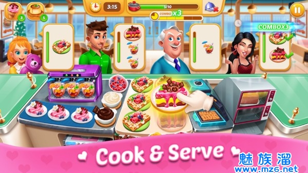 2、成为一名精明的餐厅厨师,为用户提供餐饮服务,并在免费的时间管理游戏中快速订购快餐。