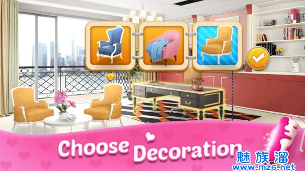 3、精美可爱的画风,清新舒适的配色,还要来进行室内的设计和装修哦。