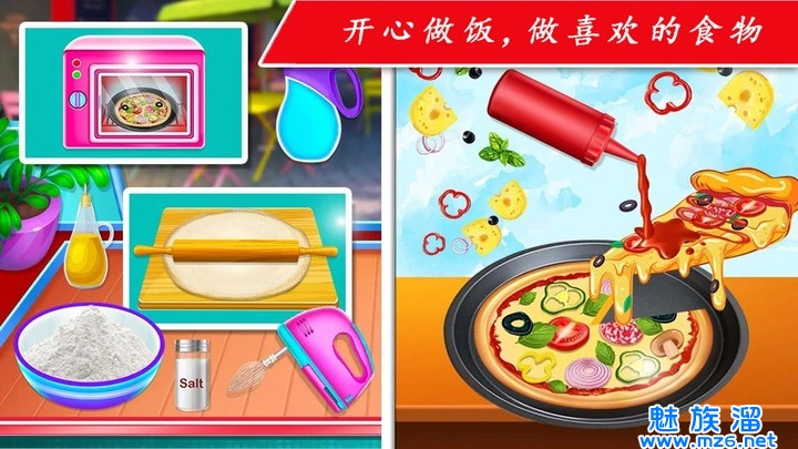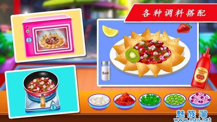 1、去模拟制作各种各样的美味佳肴,参加厨师比赛,正确夺得最终冠军;