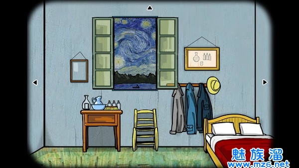 1、游戏主界面像一台老式电视机,右边摆放收集的道具,安静的音效配上独特的漫画风会让你有种在玩放置类游戏的感觉,几个场景的切换也让你感觉不到常规密室逃脱类游戏的压抑和紧张。
