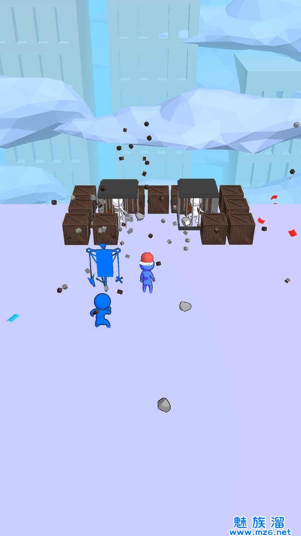 3.游戏拥有非常清新的画风,你将操作角色拿起武器不断的破坏前面的各种牢笼,解救更多的人质。