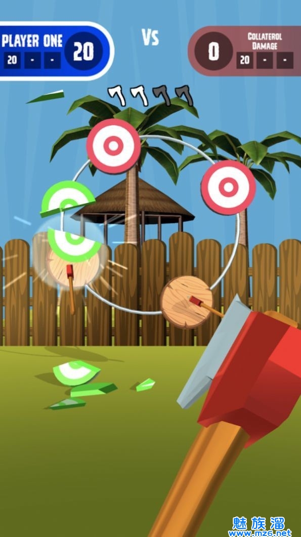 在游戏中,您只需轻按屏幕即可挥动斧头,并用超锋利的斧头粉碎目标。击中目标斧头投掷游戏。