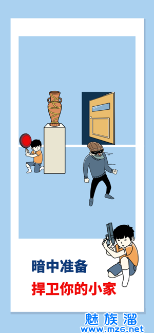 2、找到每一个关卡中出现的隐藏道具,拖动使用道具来帮助你击败闯入家中的小偷