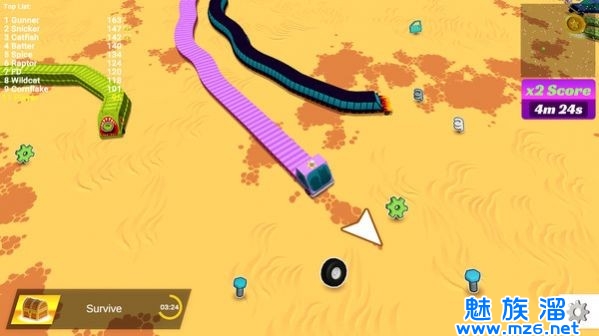 3、使用竞技场通过收集与吞噬来壮大自己,更强大的身躯让你立于不败之地。