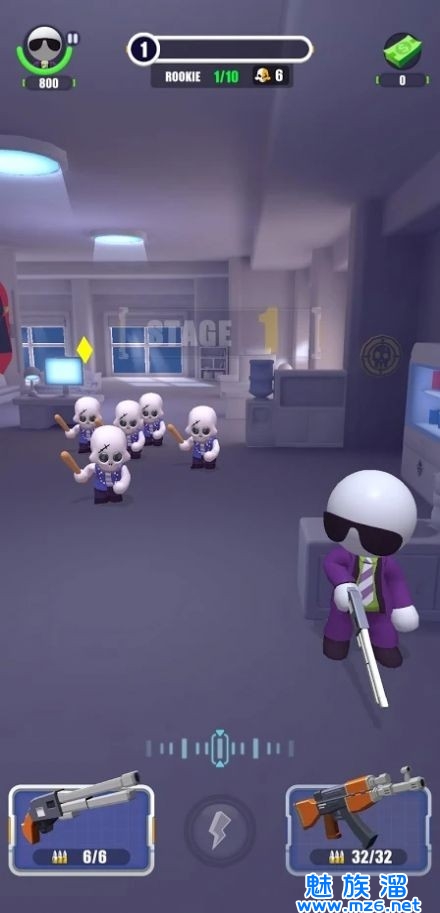 4、扮演熟练的秃头特工,通过单击向敌人射击并击败所有敌人以通过关卡。