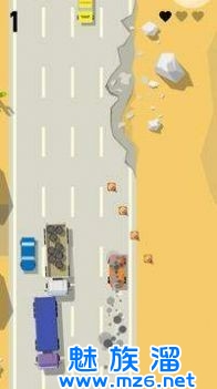 4、操作非常的简单,但是非常考验玩家的反应能力,灵活的去躲避所有的危险,保证自己的驾驶安全。