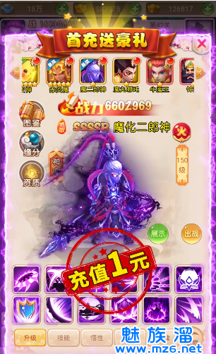 1、还原经典新西游!开局秒升175级,全红宝宝!无限挖宝10倍爆率!