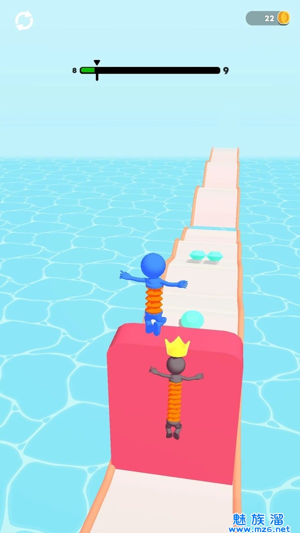你是一个弹簧组成的小人,天生具有弹跳的能力,这是你通关的最大依仗。极速冲刺前进与对手们展开比拼,点击屏幕跳跃起来,跨过高高的障碍和无尽的深渊,在最合适的位置跳跃起来,完美避开一路上的危险,收集更多的钻石和金币,极速通往胜利终点。