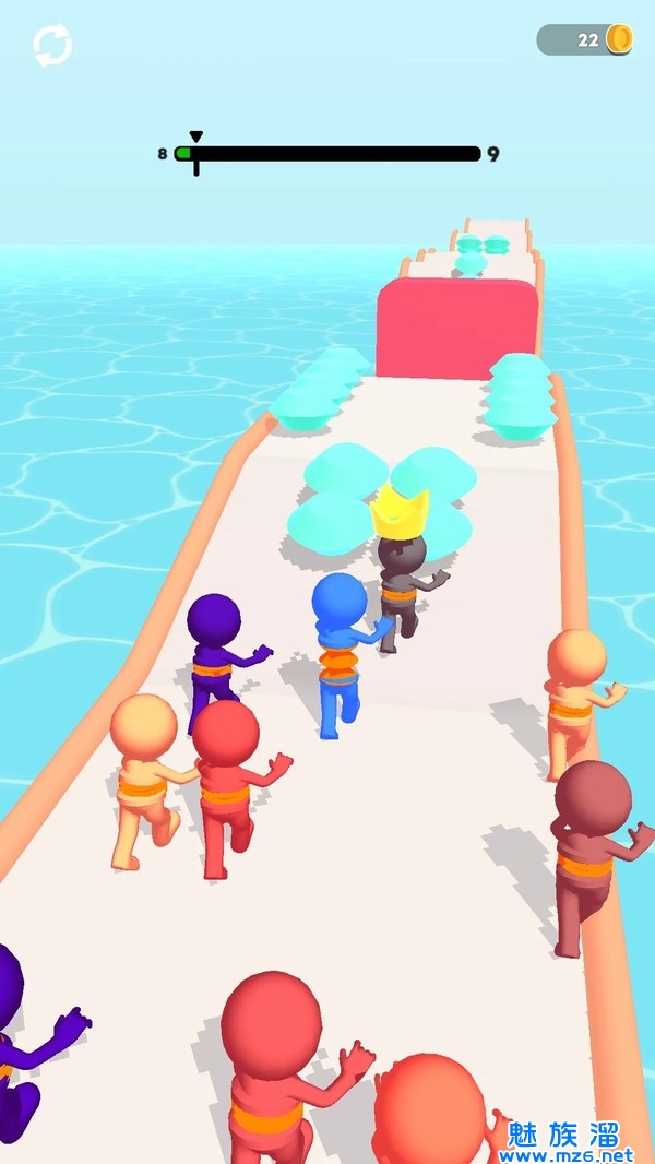 2、极速冲刺前进与对手们展开比拼,点击屏幕跳跃起来,跨过高高的障碍和无尽的深渊。