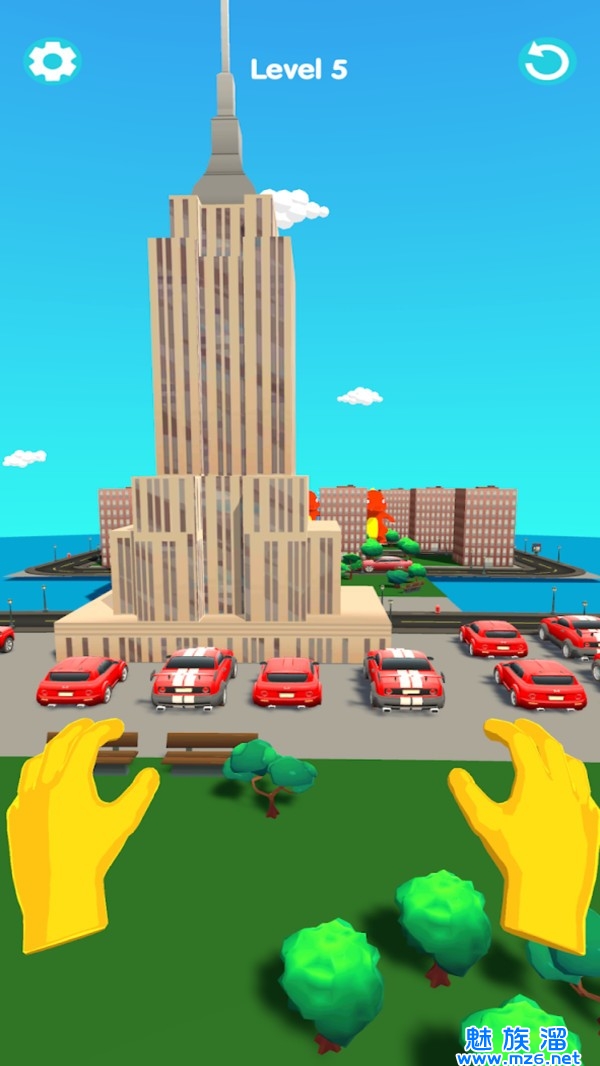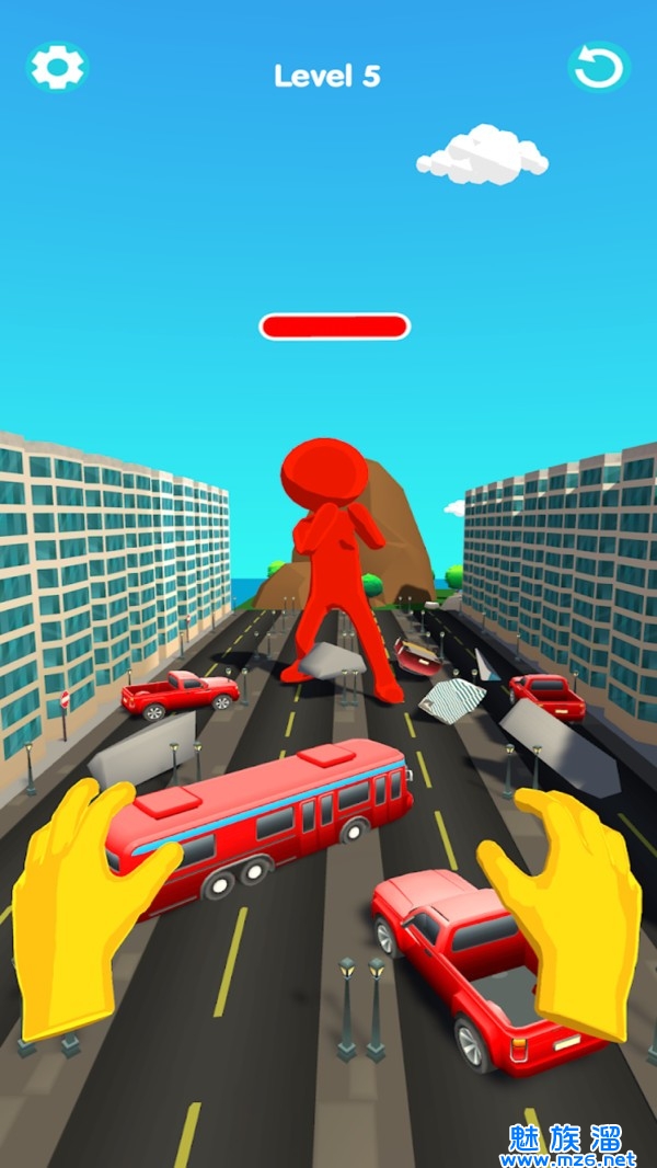 1、采用3D卡通的画面风格,在这个城市中,你将扮演一名巨人,不断的消灭各种的怪物,来获取更多的奖励。