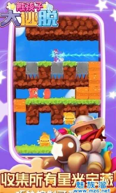 熊孩子大逃脱,一款卡通风格的闯关游戏,在这里玩家们跟随着熊孩子们进入了一个童话世界中,在这里超多不一样的冒险关卡等你体验,你需要不断地击败怪物们并躲避各种沿途路径上的障碍物才能顺利到达游戏终点,在这里享受一场梦幻般的世界之旅,感兴趣的小伙伴们快来下载试试吧!