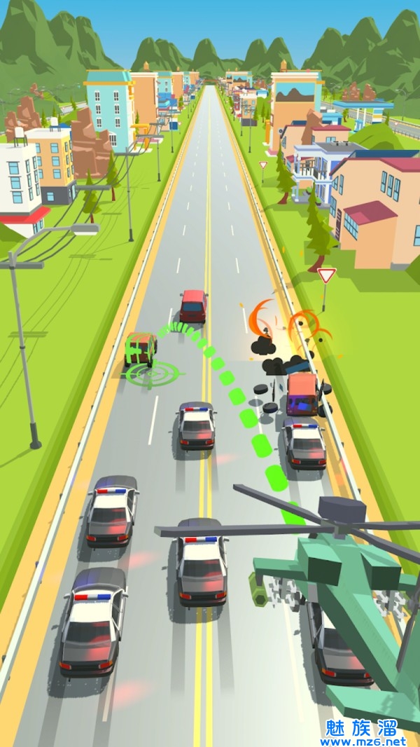 1,游戏的画面非常简约,玩家操作的飞机和地面行驶的车辆都是风快风格,细节方面比较一般。