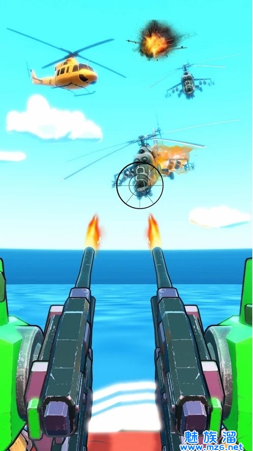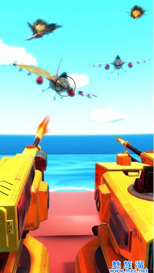 3、大炮去攻击飞机的3D射击类型的手机游戏,在空中的飞机,使用手中的枪是非常难以打爆的。
