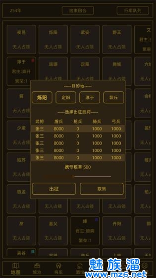 2、最开始所有的城池都是没人占领的,你可以利用手中的兵力去占领。
