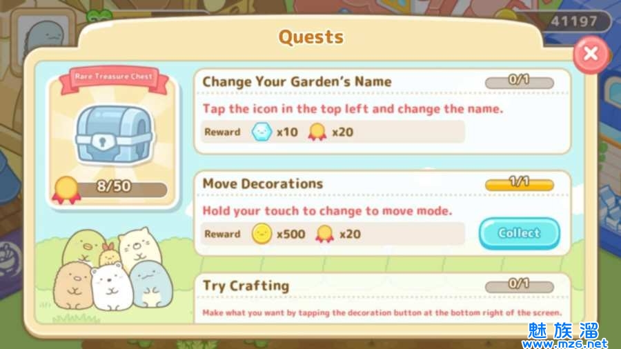 为角落小伙伴制作它们最喜欢的点心或料理。为角落小伙伴制作料理可以获得硬币等兑换装饰道具,进而打造出专属的可爱农场。