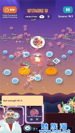 2.确定规则后,您可以连续反射酸奶球,更快地碰撞和弹跳以帮助你完成任务。