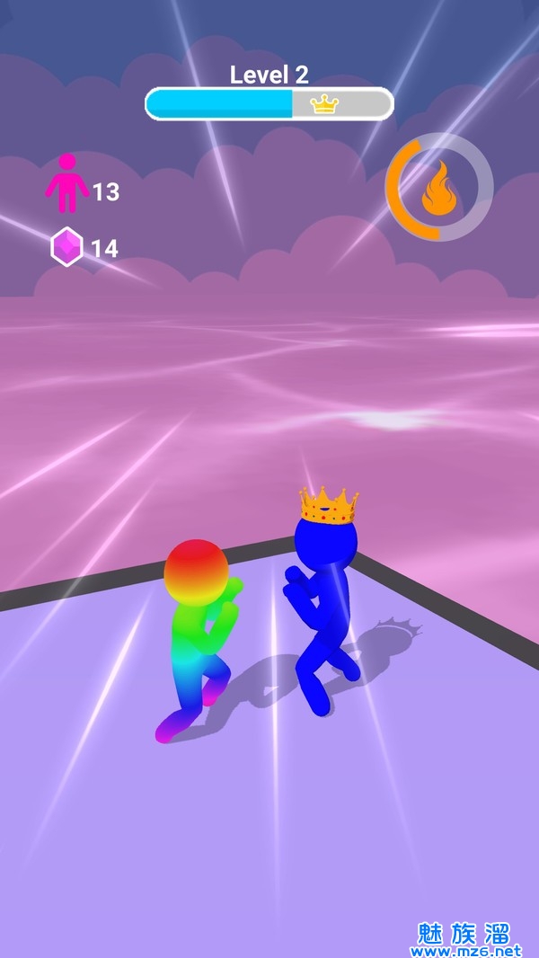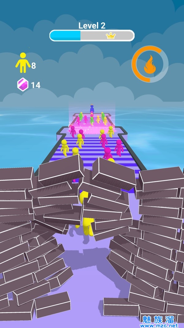 3、操控你的橡胶人在人群拥挤的赛道上奔跑前进,收集相同颜色的橡胶人能够让你的体型增大。