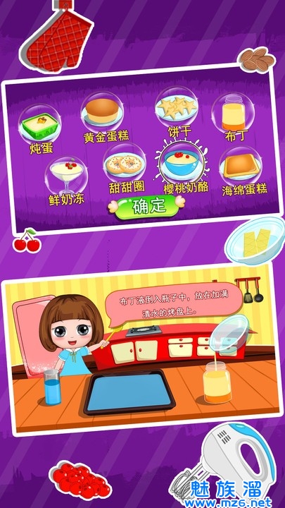 3、培养小孩子制作各种甜点的趣味模拟游戏,极简的操作方式,详细的甜点教程。