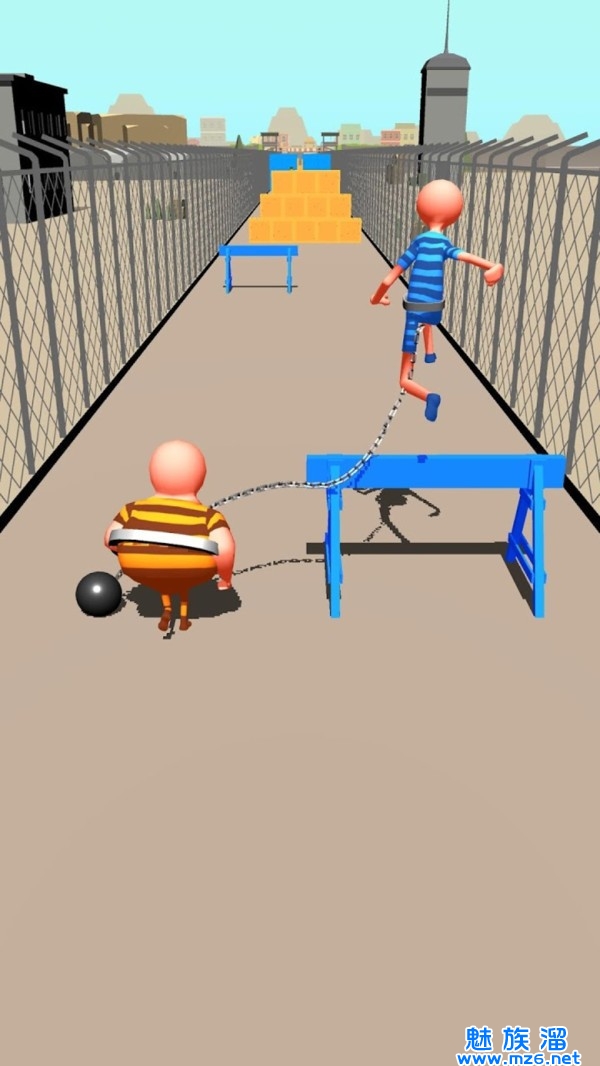 3、游戏中一个胖子和一个瘦子被铁链捆绑在了一起,它们正在逃避警察的追击。