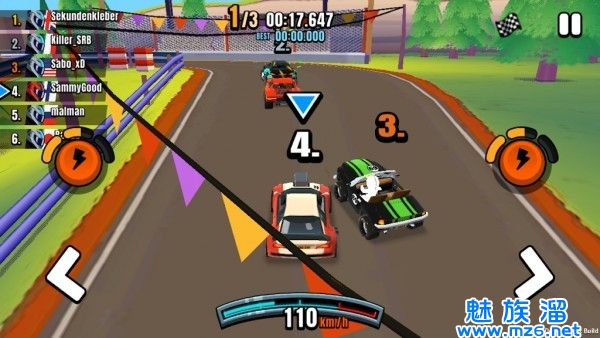 3、小心翼翼的避开障碍和危险,万一碰到了还会降低速度,很容易落后于其他的对手。