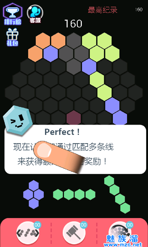 为了一次消除更多的六边星,玩家必须谨慎布局,认真思考,