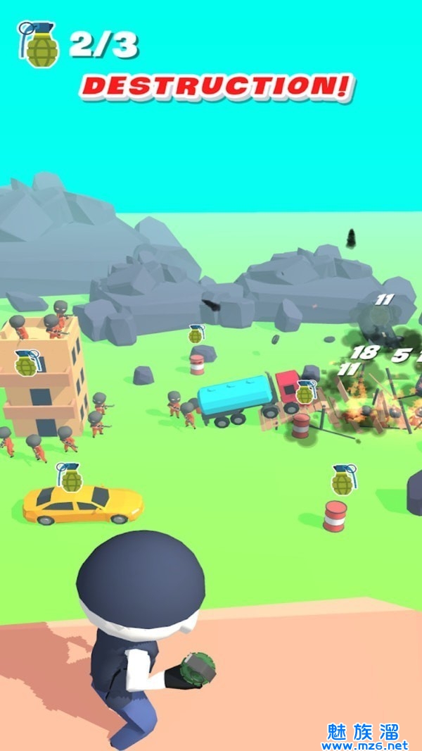 手榴弹轰炸是一款让许许多多的玩家都可以得到极致游戏乐趣的休闲益智类游戏,游戏的画面是非常精致唯美的,在这里扮演一个橡皮人,进行手榴弹的投掷,对你的敌人进行轰炸,控制好投掷的角度与力度,精准的投掷将会是你成功通关的关键,如此好玩的游戏,现在就来进行游戏的下载吧!