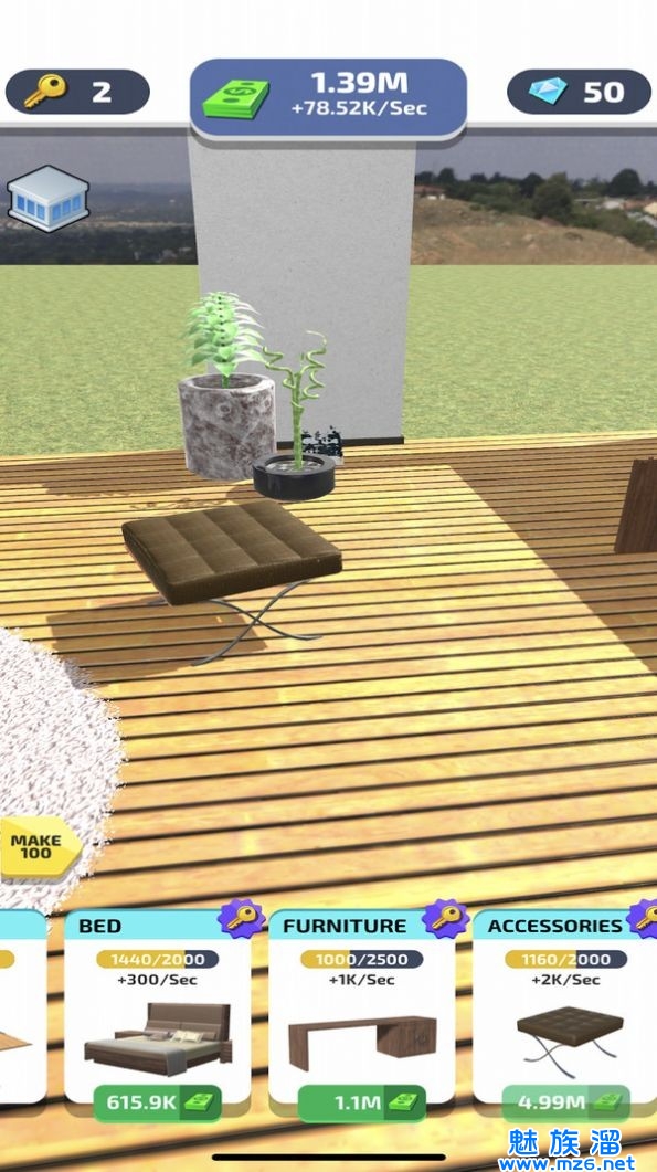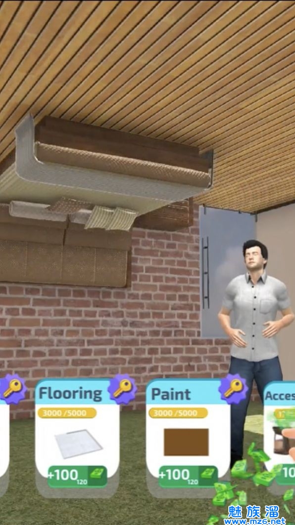 1、游戏翻新过程和轻松的点击,您可以将破旧的木房子变成豪华的别墅;