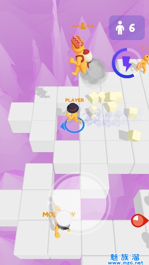 3、当有玩家因为炸弹爆炸掉落到场地外后,就会被淘汰了,活到最后的那个就是最后的赢家。