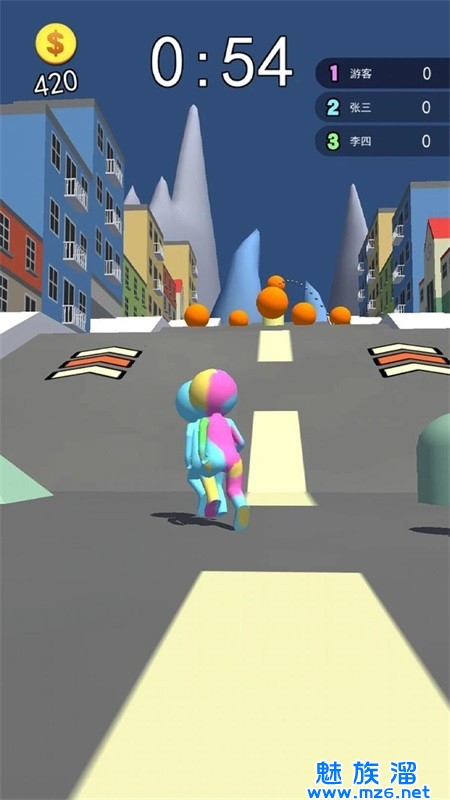2.点击屏幕以开始游戏,控制角色的方向,并避免迎面而来的障碍。