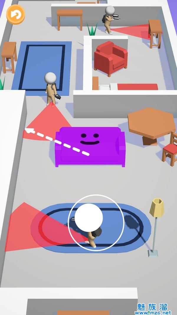 2、操作非常的简单,但是玩家需要和猫咪去进行斗智斗勇,尽可能的去进行躲藏;