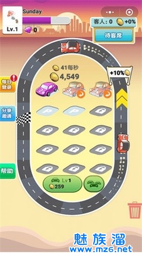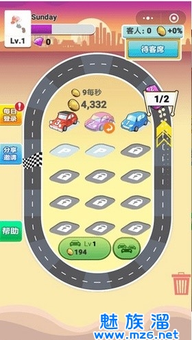2,通过使用最基本汽车不断合成最强的跑车来消磨时间,每获得一辆高级汽车,级别越高,车辆可以跑的圈数就越多。