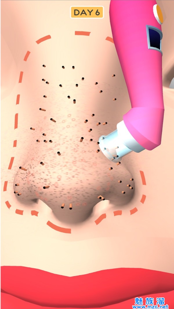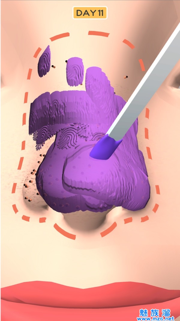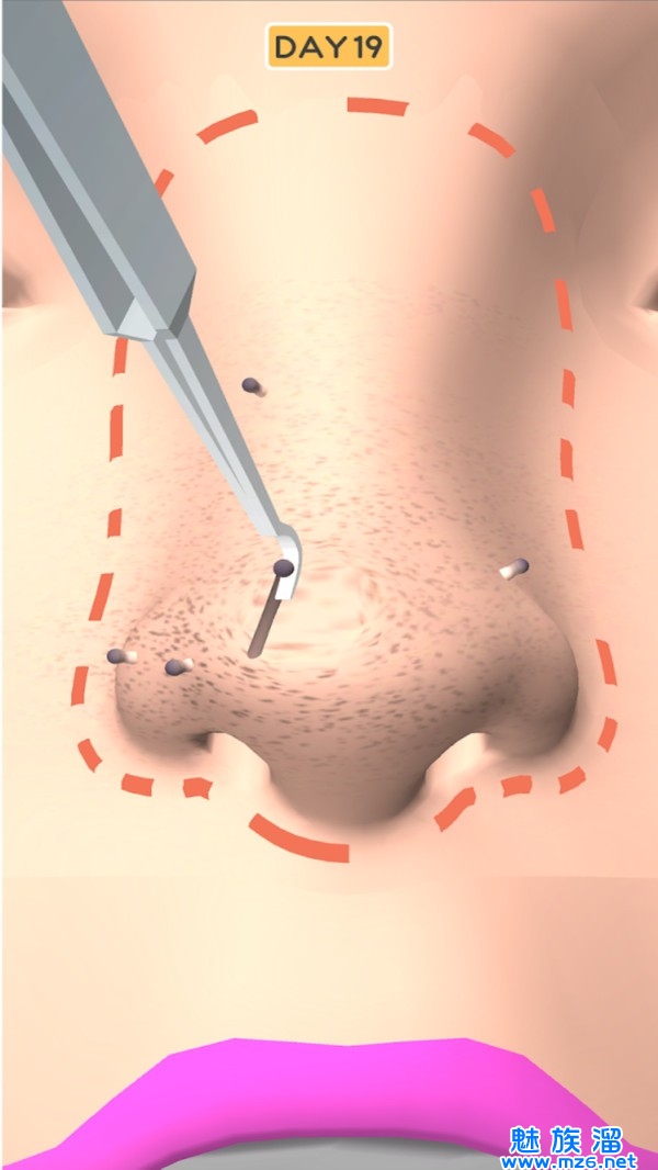 3、游戏的玩法很简单,玩家只需要戳动手指,在屏幕上不停挤压,直至将鼻子周围的脏东西全都清理干净即可闯关成功。