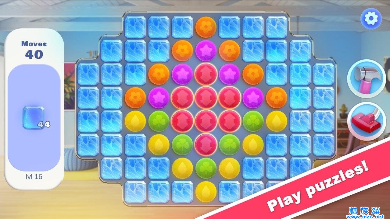 3.玩令人兴奋的比赛3游戏,打开更多的室内项目!获得独特的家具和配件。