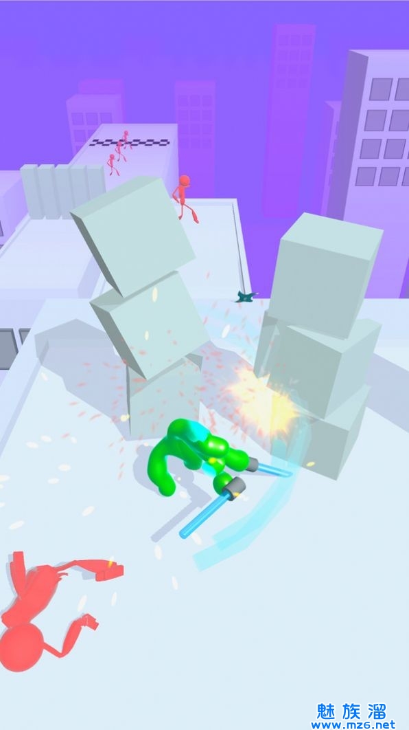 1、灵活的去控制自己的果冻人去进行闯关,通过不断的射击,用实力去消灭更多敌人;