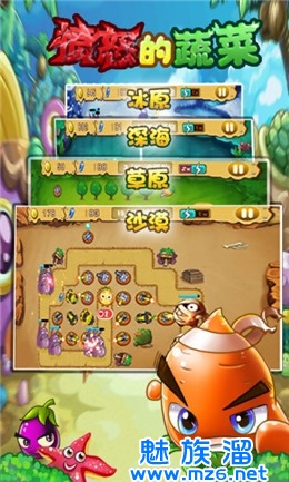 3.5秒钟你只需要一根手指就可以上手,有趣的玩法,停不下来,几十种可爱的蔬菜等着你的保护。