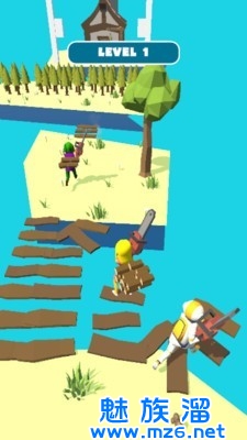 1、一边弹跳躲避沿路的阻碍,一边挥舞你手上的伐木斧;