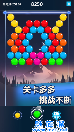 你的目标是在泡泡碰到底部前清除所有气泡,以消除来得分。