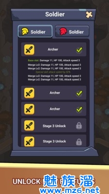 1、解锁新型士兵,提升士兵的战斗能力,探索比赛和战斗技能的方式,全面提高团队的战斗力;