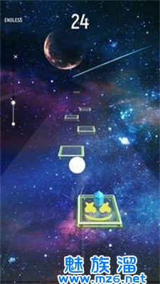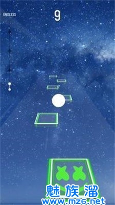 1.跟着音乐的节奏,控制小白球在宇宙语境中前进跳跃。