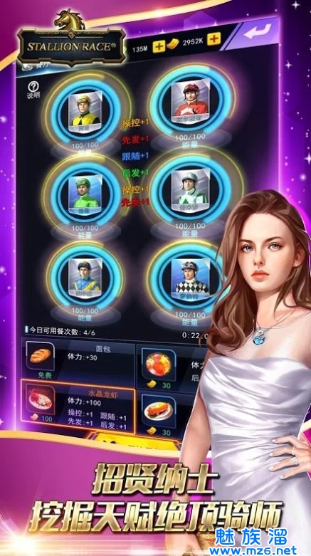 种马竞赛游戏,一款趣味养成类手机游戏,在这款游戏中,玩家们将体验全新的与众不同的游戏经历,你将经营一家属于自己的马厂,为了你的马场挑选最棒的马种,成功地提升自己的知名度,帮助自己的马厂名声远扬,做得越来越好,感兴趣的小伙伴们快来下载亲自体验一下吧!