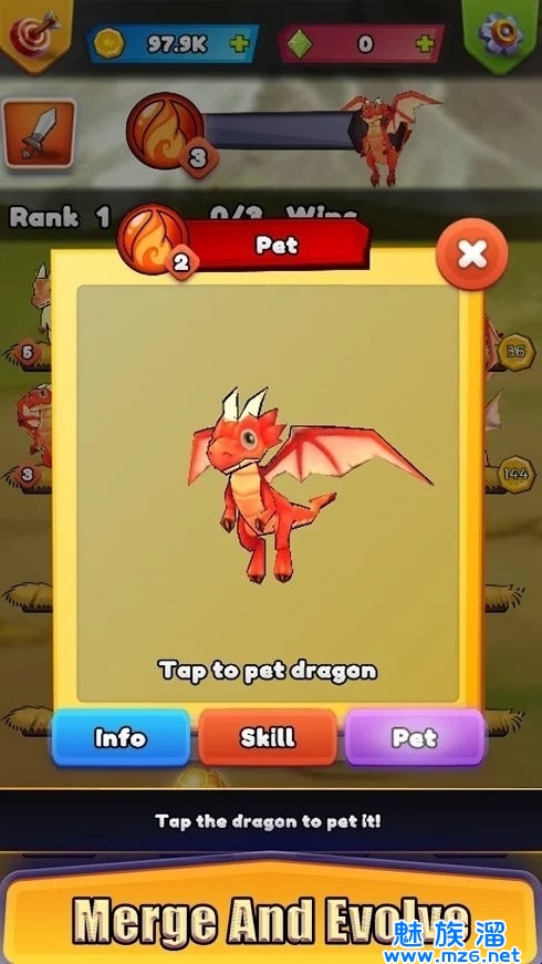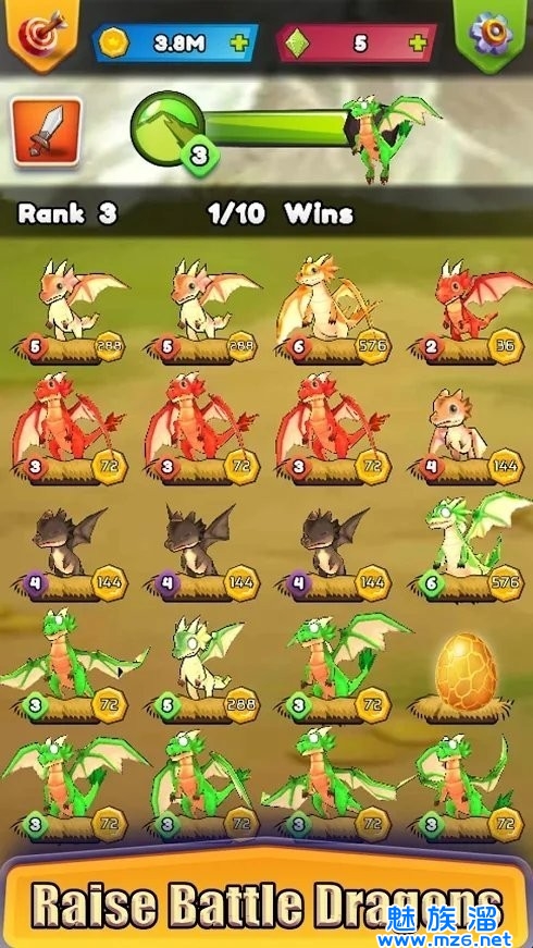 3、合成升级多种龙供你来解锁,逐渐升级养成更庞大的队伍,准备迎接新的挑战。