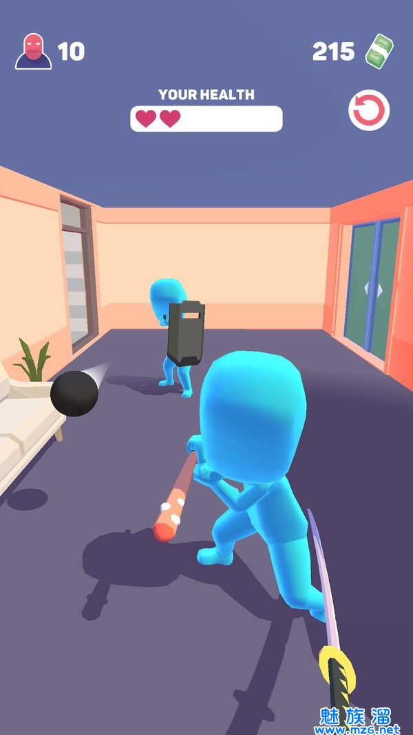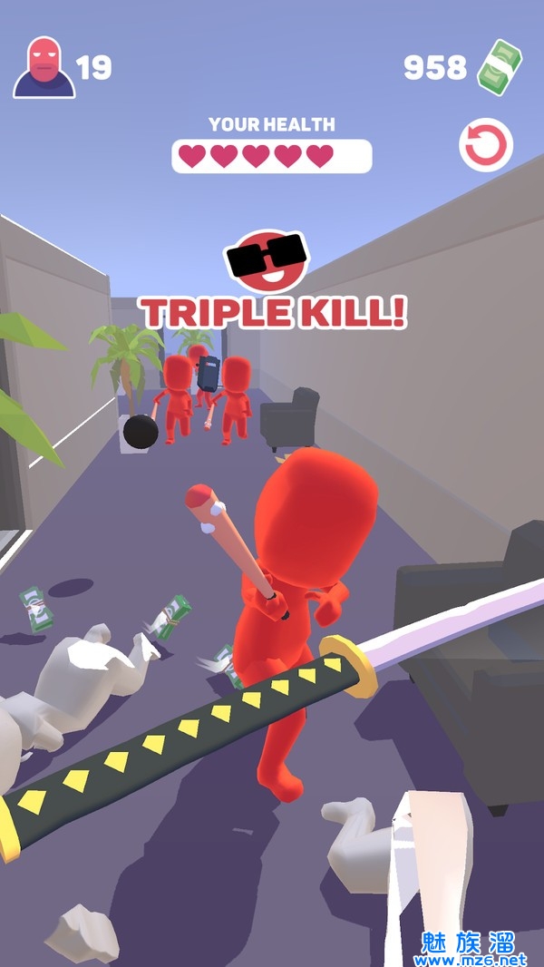 1.当武士开始移动时,他必须切断与他同色的敌人,当他削减敌人时,他获得了更大的削减速度,变得越来越快。