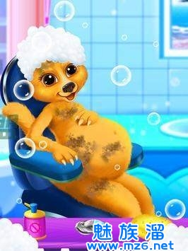 1.小狗妈妈太累了。她需要你帮她洗个泡泡浴。用海绵给她洗个澡。