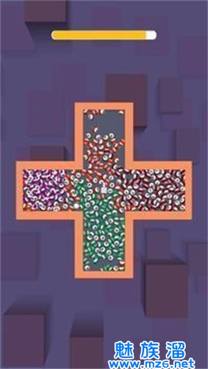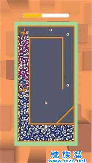 玩家需要通过挡板不断将关卡中的小球向前跳跃,直到弹射到下一个关卡,