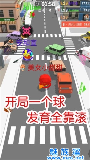 球球滚动大作战-拥挤城市这款游戏为我们构建了一个可以在城市中展开自由碰撞体验的城市冒险世界,