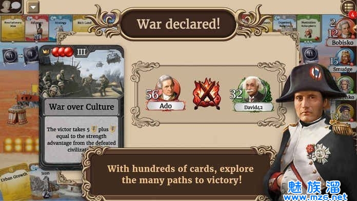 才能够有效的击败对手。游戏中玩家可以选择自己不同的战术挑战强大的对手从而获取丰厚的资源,以壮阔自己的文明。