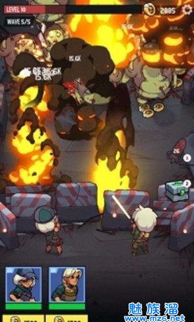 2.游戏中各种兵种消灭丧尸获得能量,点击屏幕下方的按钮,召唤强力手臂强化自身力量。