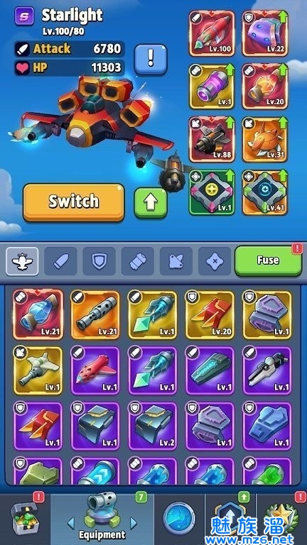 1、超多炫酷的战机等待玩家探索,更有超多辅助装备等待玩家解锁。