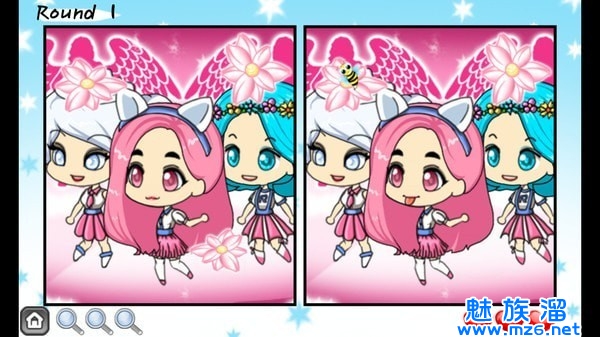 玩家需要在两张图片中找到5个不同的地方,十分考验我家的眼力,100个游戏关卡,