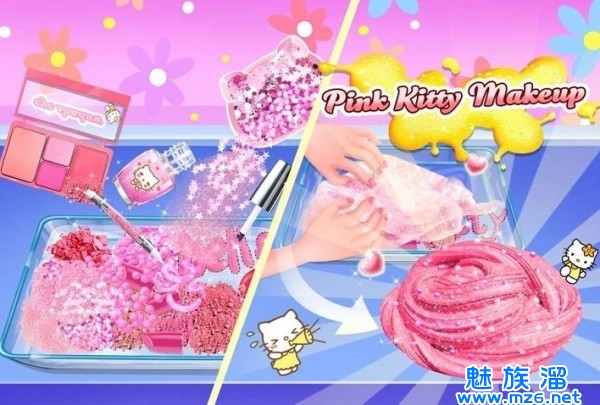 3、粉红猫咪给你一些粉红色的妆容。您也可以将粉红色的妆容添加到透明的粘泥中。